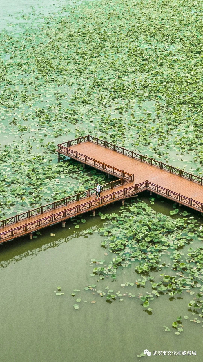 每年3月,「消泗乡」的五万亩油菜花盛放,为武汉人送来一个热闹的春意人间。到了7月,索子长河穿过「金龙水寨」,近万亩荷花摇曳,人们独爱那泛舟莲中过的意境。每逢收获季,「十里莲华养心谷」里稻浪翻涌。