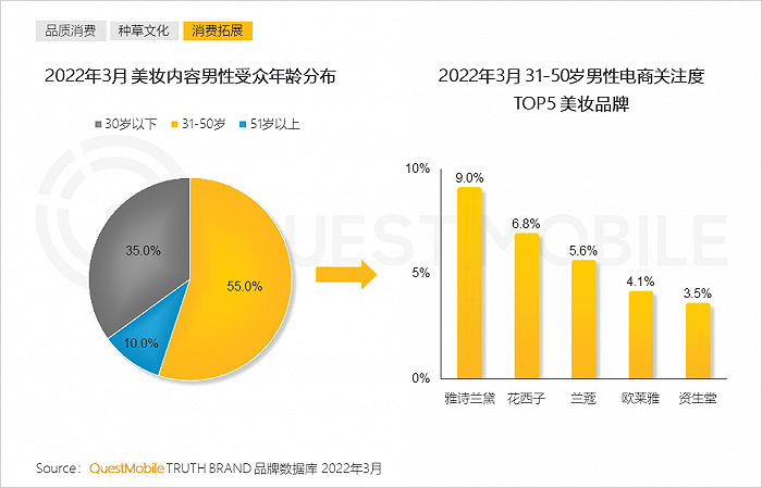 8、大批“精致男孩”的出现激发出新的美妆产品需求, 31-50岁男性用户作为美妆营销主要受众群体,其较为关注的美妆商品以国际大牌为主,国货品牌表现亦较突出