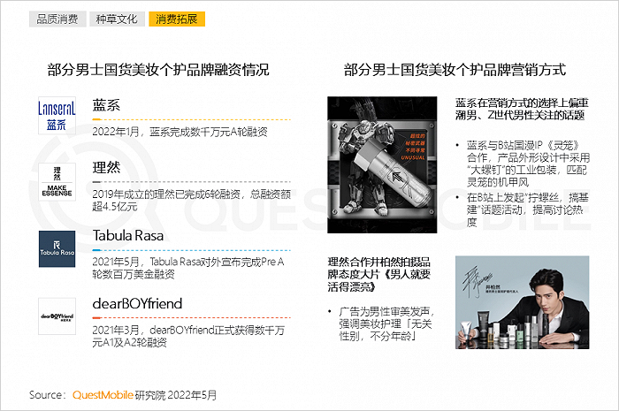 9、男士美妆市场潜力正在凸显,多个新锐男士美妆品牌获得资本亲睐,产品系列主要偏向年轻人群