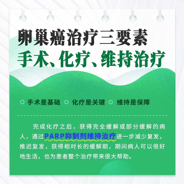对于卵巢癌患者而言,初始阶段的治疗非常重要,一线治疗后尽可能地延缓复发对患者生存获益最大。尤其是新诊断的卵巢癌患者,争取第一时间的治疗,对患者的生存期和生存质量有着决定性的影响。而且复发后治疗花费更大,也无法达到初次治疗的同等疗效。