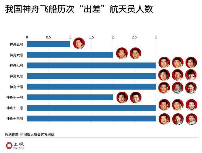 23年内,我国载人航天工程先后共有13位航天员“太空出差”。