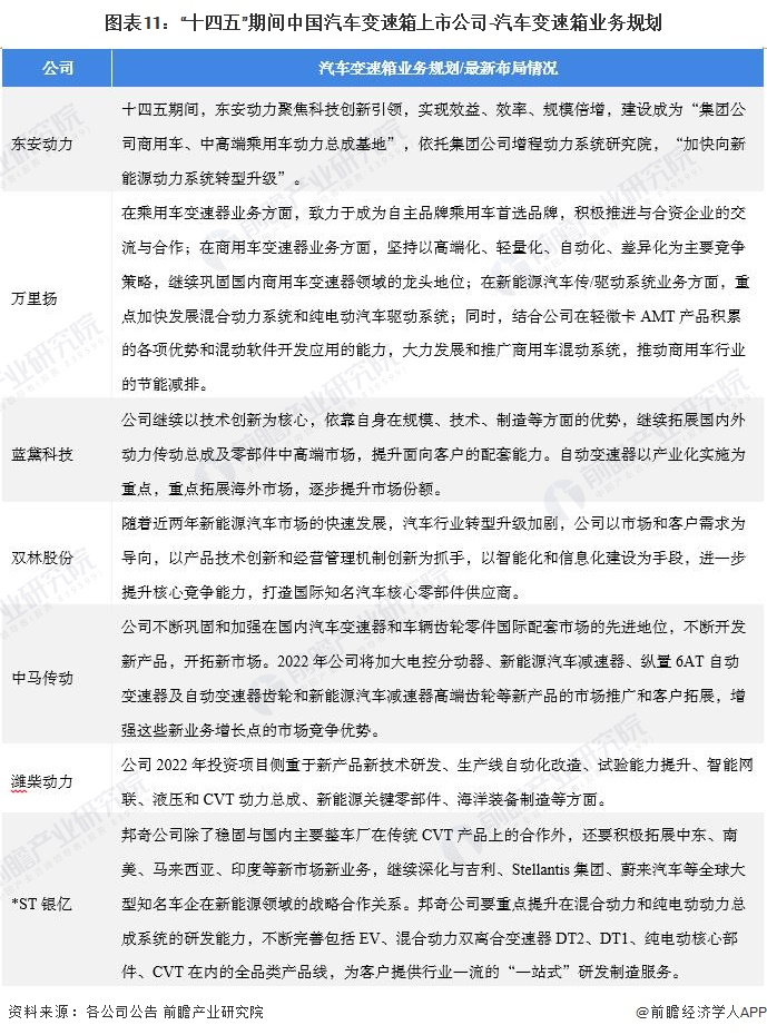 4、汽车变速箱行业上市公司汽车变速箱业务规划对比
