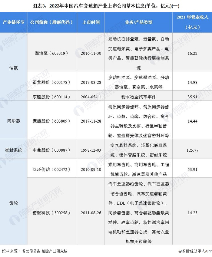 变速箱油泵上市公司:湘油泵(603319)、圣龙股份(603178)、东睦股份(600114);