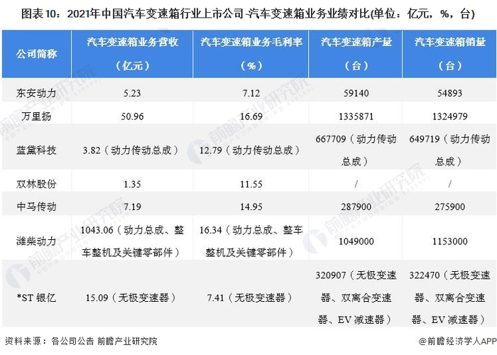 其中,涉及汽车变速箱产品的上市公司包括:东安动力、万里扬、蓝黛科技、双林股份、中马传动等。