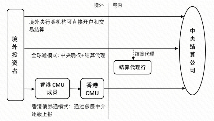 目前境外机构可以通过一级托管的全球通直接入市模式和多级托管的香港债券通间接入市模式进入中国银行间债券市场。中央结算公司既支持全球通模式,又支持香港债券通模式,并以全球通模式为主。