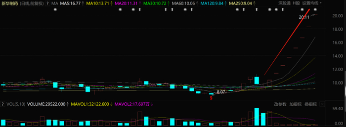 也正是从这一天起,新华制药股价连续8个涨停板。