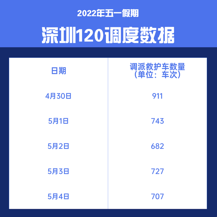 “五一”期间,深圳120日均出动救护车754次。