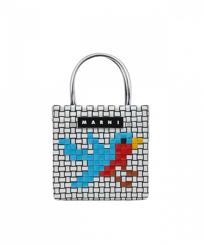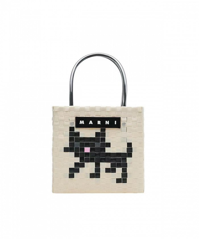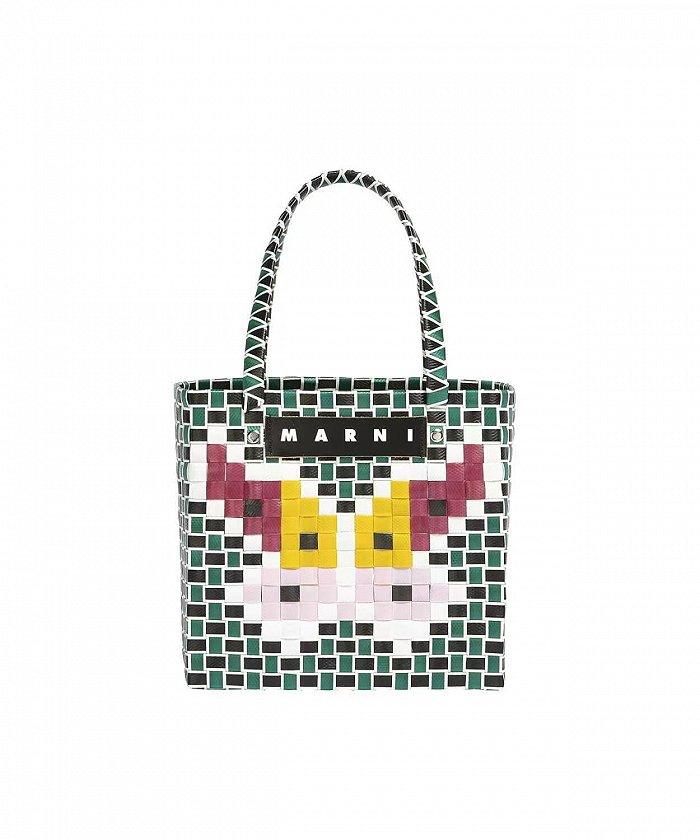 Marni以色彩斑斓的几何造型和巧妙的艺术构思,打造出菜篮子包袋,新潮又复古,带它出街时尚感能瞬间提高不少。最近这款包袋将猫咪,蝴蝶等一众趣味性十足的动物图案焕新编织,从远处看每个图案都如NFT虚拟像素角色般软萌可爱,为整体增添了新颖的创意。