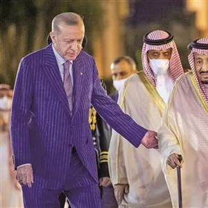 4月28日,土耳其总统埃尔多安抵达沙特海滨城市吉达,对沙特进行正式访问,这是埃尔多安5年来首次访问沙特。访问期间,埃尔多安会见了沙特国王萨勒曼、王储穆罕默德,双方就推进两国关系在各领域发展以及共同关心的国际和地区问题交换意见。