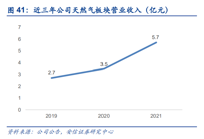 “双碳”目标推动能源结构转型,天然气供、需量有大幅增长空间。作为最清洁的化石能源,在从高碳向低碳、无碳的演变进程中,天然气的桥梁作用将进一步彰显,2021 年我国天然气供、需两旺。据 Wind 数据,中国已然跃升为全球 LNG 进口第一大国,进口量达 1685亿立方米,同比增长 20.7%;国内生产量总计 2079 亿立方米,同比增长 7.7%。消费量 2021年达 3654 亿立方米,同比增长 12.4%。据《“十四五”天然气发展路径》预测,2025 年我国天然气消费量有望达到 5000 亿立方米。随着天然气行业进入高速成长阶段,公司天然气业务板块潜在成长空间巨大。