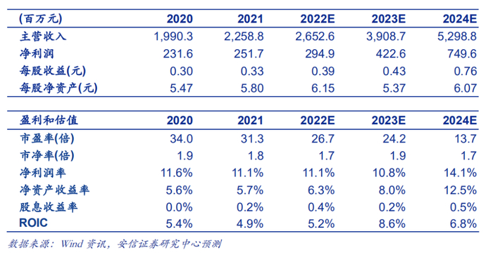 新能源装机投产高峰即将到来,叠加省内风资源优势带来的高盈利能力,我们预计公司业绩即将迎来高增长。我们预计公司 2022 年-2024 年的营业收入分别为 26.53 亿元、39.09亿元、52.99 亿元,增速分别为 17.4%、47.4%、35.6%,净利润分别为 2.95 亿元、4.23 亿元、7.50 亿元,增速分别为 17.2%、43.3%、77.4%,成长性突出;维持买入-A 的投资评级,6 个月目标价为 16.0 元。