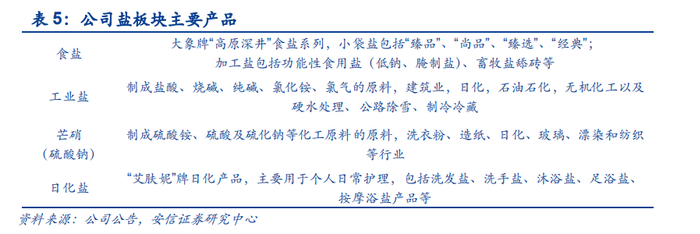 “盐+清洁能源”双主业发展,2019 年置入风电项目开拓新能源领域。盐业为公司传统主业,盐业板块分为食盐、工业盐、芒硝和日化盐四条产品线,是国家授权云南省唯一的食盐生产企业和云南省政府授权唯一经营碘盐企业,现有“白象牌”精致食用盐,根据公司在公开投资者交流中披露的信息,在云南市场占有率达到 80%。