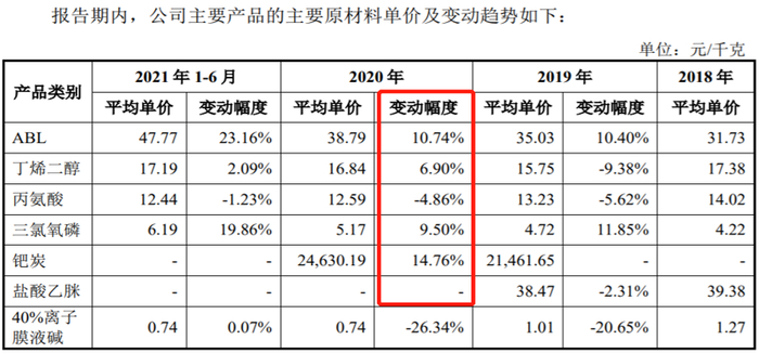 根据招股书披露,在报告期内天新药业的主要产品包括维生素B6、维生素B1和生物素,其销售价格在2020年均出现下滑,其中维生素B6平均销售单价从2019年的164.89元/千克下降到2020年的149.92元/千克,维生素B1平均销售单价从2019年的185.97元/千克下降到2020年的182.33元/千克。与此同时,招股书披露的公司主要产品的主要原材料单价中,2020年的核心原材料价格大部分都是上涨趋势,也即天新药业在2020年面对着原材料成本上涨、产品销售单价下降的压力。