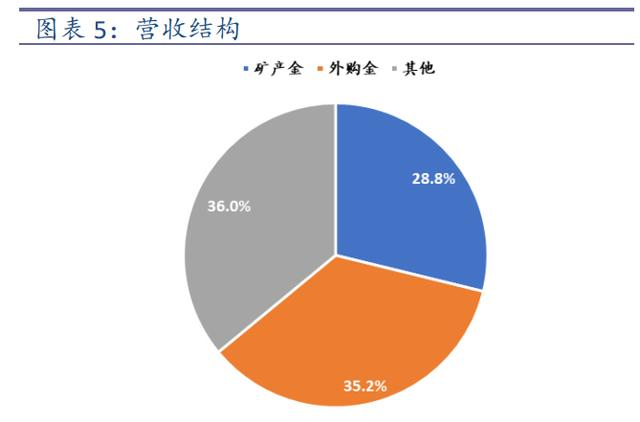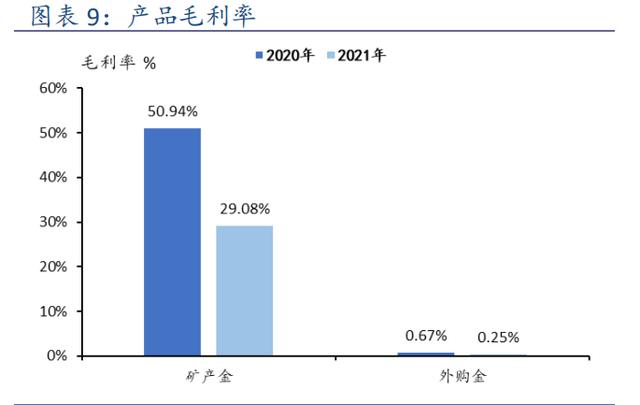 自产金及外购金贡献主要收入。收入按产品划分,2021 年自有矿产金和外购金分别实现收入 97.8 亿元和 119.5 亿元,占比总营收分别为 28.8%和 35.2%。