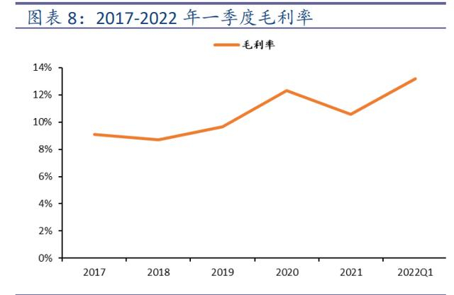 2022 年一季度,公司盈利能力恢复到去年停产之前。2021 年公司亏损 1.94 亿元,同比下降了 108.6%;2022 年第一季度,公司盈利能力恢复到去年停产之前,实现归母净利润 3.15 亿元,同比上涨了 195.7%。毛利润贡献方面,2021 年矿产金贡献主要的毛利润,金额为 28.43 亿元,占比总毛利约 79.35%。公司毛利率稳步增长,2021 年和 2022 年第一季度,公司的毛利率分别为 10.56%和 13.18%;其中,矿产金毛利率远高于外购金,2021 年毛利率分别为 29.08%和 0.25%。