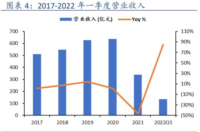2022 年第一季度,营业收入为 134.8 亿元,同比大幅上涨了 85.49%。主要系子公司自产金销量增加及开展大宗贸易所致。
