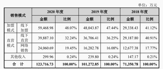 为增强直营模式,八马茶业成立了电商团队,与京东、天猫、唯品会、拼多多等电商平台开展合作,发展线上与线下相融合的新零售模式。2018年-2020年,网络销售收入占主营业务收入的比例分别为17.77%、16.08%、19.45%。