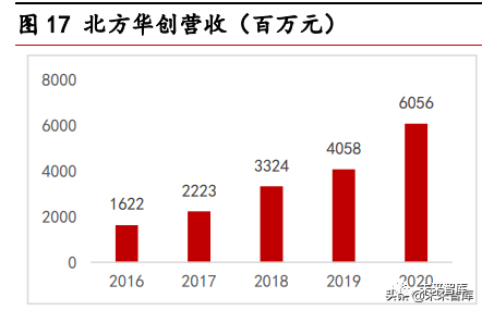 北方华创是我国泛半导体设备平台性的龙头企业,兼具技术先进性和产品全面性,相对 来说更容易获得国产替代的估值攀升。更加平台化的北方华创在薄膜沉积设备领域同样 具有较强的技术能力。薄膜沉积是一种在晶圆基片上沉积薄膜材料的工艺流程,常见种 类包括物理气相沉积(PVD)、化学沉积(CVD)及原子层沉积(ALD)等。北方华创的 PVD 工艺尤其领先,其自主研发了 13 款 PVD 产品,实现了国产 28nm 后端金属硬掩膜的突 破。北方华创的 CVD 设备覆盖功率、光伏等较多领域,目前 LPCVD 设备部分产品在国内 SMIC 先进工艺生产线上实现突破,PECVD 设备主要用于光伏电池片生产,大幅节约电能 成本。北方华创的产品除了薄膜沉积设备、刻蚀设备、清洗机、氧化扩散炉,还有气体 测量控制设备、热处理设备、新能源锂电等多种泛半导体设备,因此其可被看作我国半 导体设备的龙头型平台企业。其近年随市场扩大收获了营收和净利润的节节攀升。