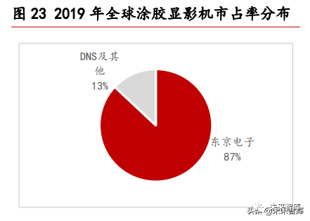 芯源微是前道涂胶显影设备目前国内主要供应商。公司生产的前道涂胶显影设备已获得 多个前道大客户订单及应用,下游覆盖逻辑、存储、功率及其他特种工艺等多家国内厂 商,实现了小批量替代,大客户认证进展顺利。具体来说,公司生产的 offline 涂胶显 影机已实现批量销售,I-line 涂胶显影机已经通过部分客户验证并进入量产销售阶段, KrF 涂胶显影机已经通过客户 ATP 验收。随着各项技术突破及工艺验证推进,公司前道 涂胶显影机已具备逐步实现国产替代的技术实力。在 2019 年中国大陆涂胶显影机市占 率分布中,芯源微已占据 4%左右,虽然离东京电子 91%的市场份额还相距甚远。