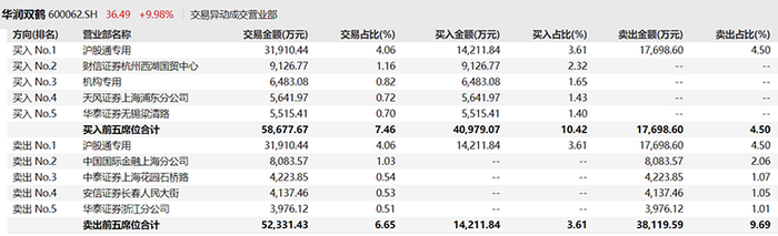 中金公司上海分公司营业部在华润双鹤龙虎榜中已经5次上榜