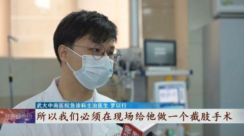 罗以行医生也表示:“为了让他伤口感染的这个几率减小,让他出血出的更少,所以我们必须在现场给他做一个截肢的手术。”