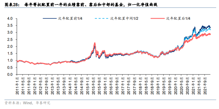 3)统计每年业绩表现靠后的1/4的基金,在次年等权配置。