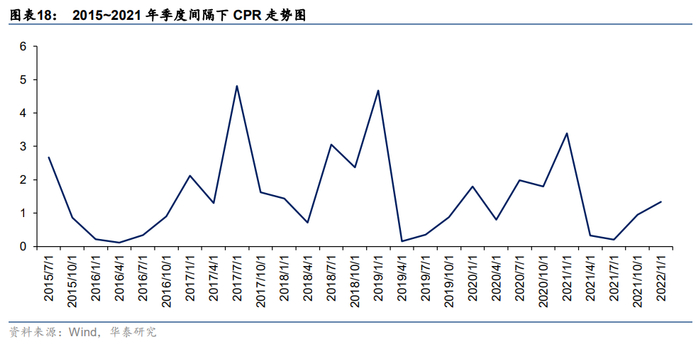 1) 由于股市风格变换等因素,CPR随时间变化的走势波动较剧烈,季度与半年度CPR走势图抖动较为明显。