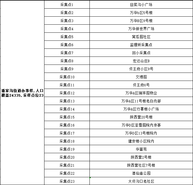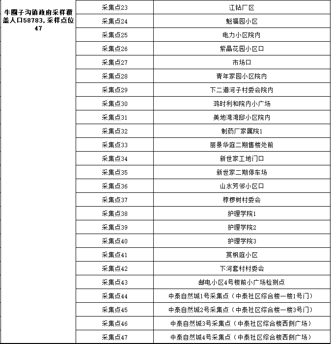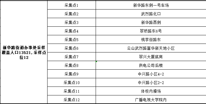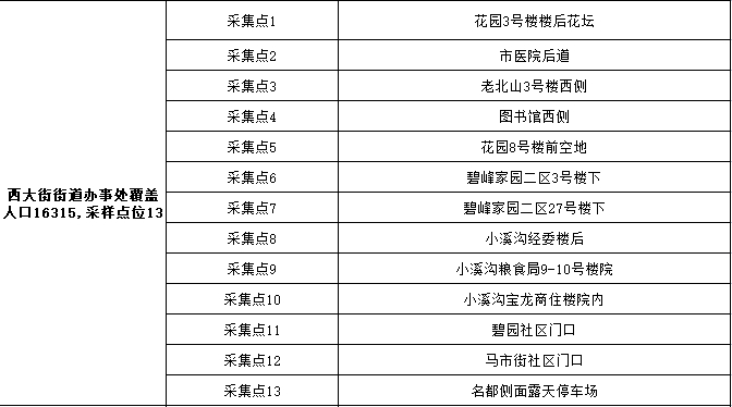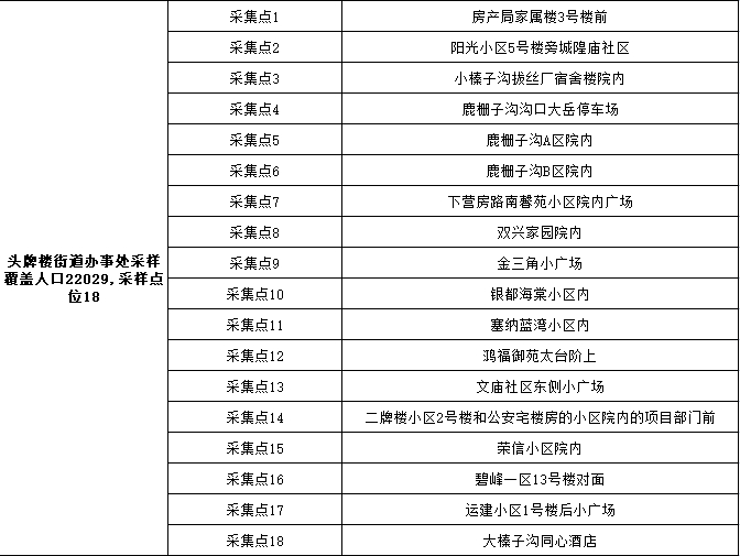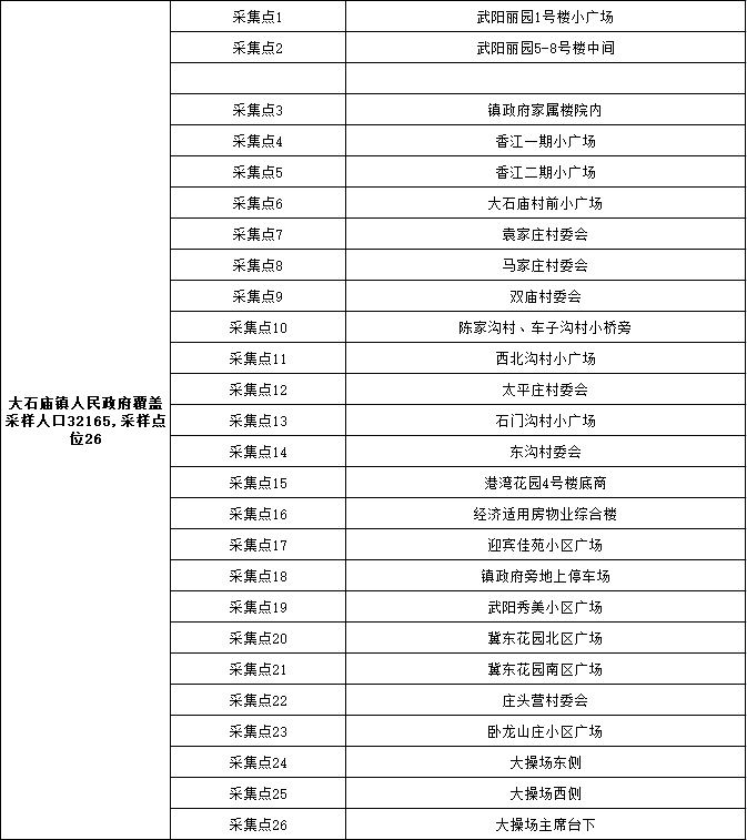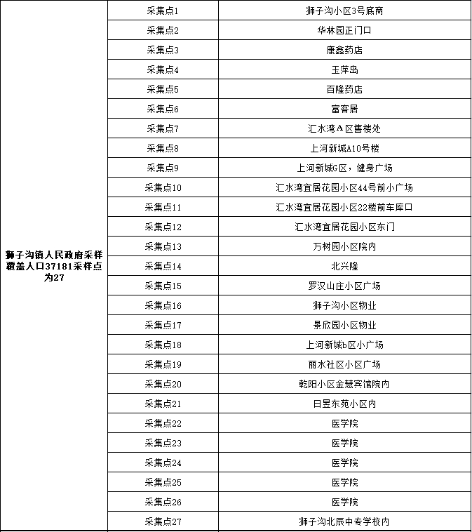 2、采样地点:按所在乡镇(街道)、村(社区)统一安排,在指定地点进行采样。