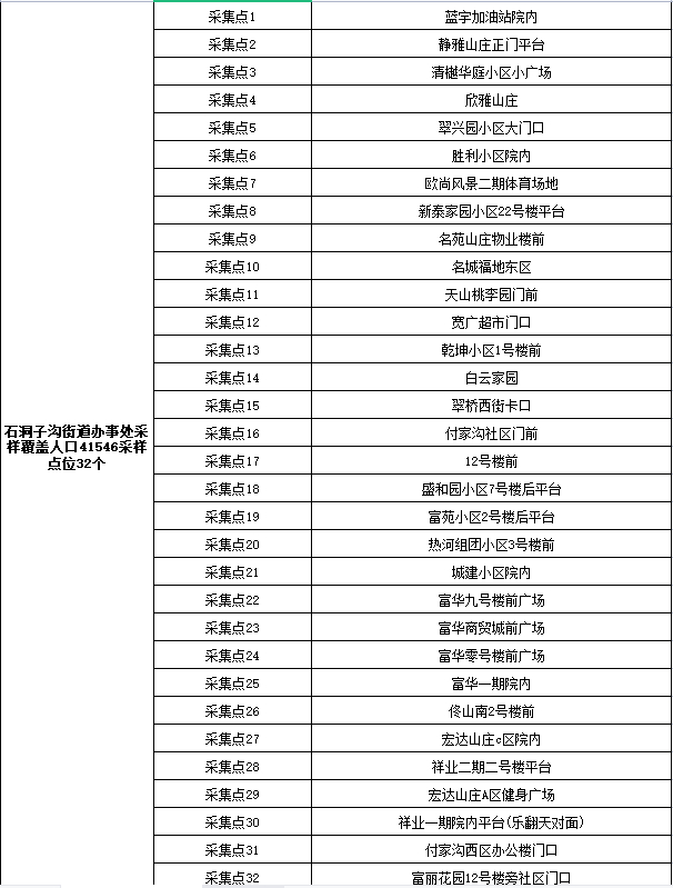 2.采样地点:按所在乡镇、村(社区)统一安排,在指定地点采样。