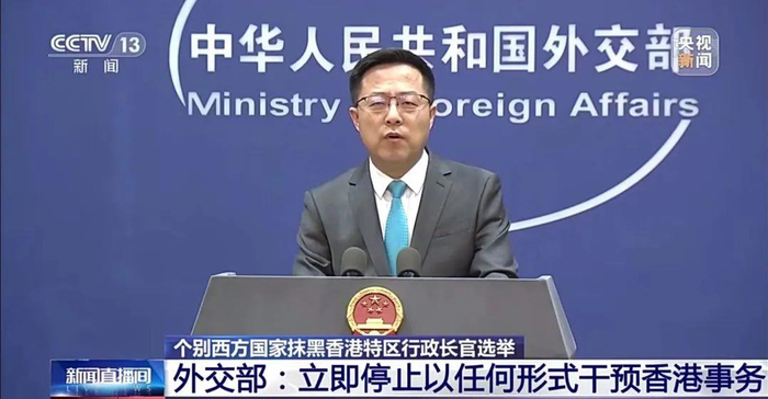 香港特区第六任行政长官选举日前成功举行,李家超高票当选行政长官人选。然而,美西方一些政客又坐不住了,七国集团外长和欧盟外交与安全政策高级代表急不可耐地跳出来大放厥词、抹黑攻击。对此,我外交部发言人在今天的记者会上表示坚决反对和强烈谴责,敦促有关国家和机构立即停止以任何形式干预香港事务。这一小撮跳梁小丑的胡言乱语丝毫阻挡不了香港由治及兴的步伐,只会自曝傲慢虚伪、阴险丑恶,奉劝他们闭嘴吧!