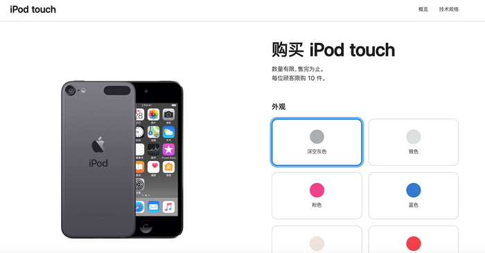 苹果表示,将继续通过其网站销售剩余的iPod touch,起价为1599元人民币,直到库存耗尽。这些iPod touch包括容量为32GB、128GB和256GB的型号,以及包括银色、粉色、蓝色和金色在内的六种颜色。记者看到,截至目前,苹果中国官网显示,多款iPod touch在售,每人限购10件。
