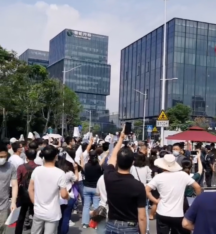 结果我们都知道了,楼还没盖好,雪松就暴雷了。因为当时是一次性付款,于是便出现了许多员工和购买者,纷纷来到雪松总部楼下,要求退钱的情形。
