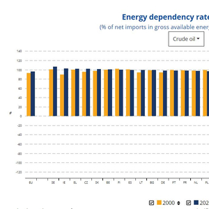 欧盟各国对进口原油的依赖度。图片来源:欧盟统计局