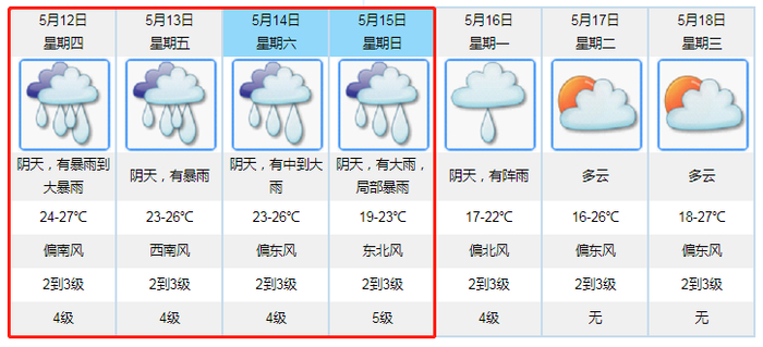 5月12日有暴雨到大暴雨,局部特大暴雨;