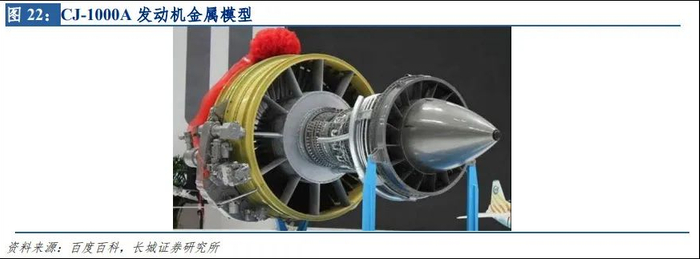 CJ-1000A发动机金属模型 图源:长城证券研报