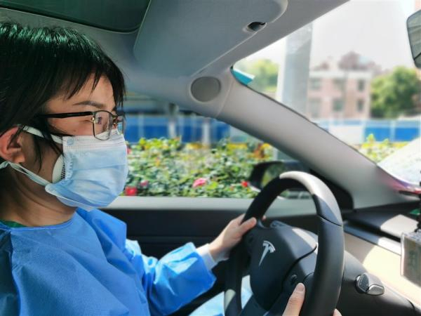 一位上了年纪的志愿者开来自己的电瓶车,其他成员的交通工具都是私家车。为了一次放入更多药品,志愿者还会把车后排的靠椅也放平了放置药品,驾驶座前后距离被压缩到了尽可能小。