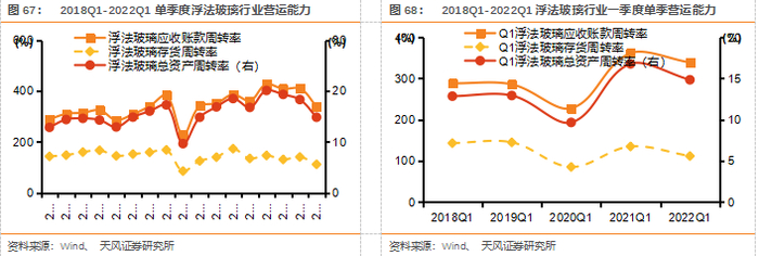 我们跟踪的7家浮法玻璃行业上市公司(信义玻璃、南玻A、金晶科技、耀皮玻璃、旗滨集团、北玻股份、秀强股份),2021 年总计实现收入429.3亿元,Yoy+35.7%,实现归母净利润73.7亿元,Yoy+127.5%;2021Q1实现收入95.2亿元,Yoy+5.6%,实现归母净利润11.6亿元,Yoy-37.6%。21H1旺季不旺,受益于浮法玻璃价格上涨,21Q1-Q2行业毛利率/净利率双升,7月开始需求有所下滑,叠加纯碱大幅上涨,Q3起单季度净利率环比有所回落,全年实现净利率17.2%,同比提升7pct,21Q1玻璃价格冲高回落,但纯碱价格环比也有所下降,盈利能力环比有所回升。21年全年ROE同比提升11pct达22.2%,22Q1单季度ROE 下滑至3.2%,下降幅度较大但仍处于历史较好水平。