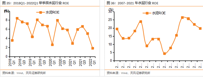我们跟踪的11家水泥公司(冀东水泥、上峰水泥、万年青、天山股份、塔牌集团、青松建化、宁夏建材、海螺水泥、祁连山、华新水泥、福建水泥),2021年合计实现收入4579亿元,Yoy+55.4%,实现归母净利润620.4亿元,Yoy+16.3%;2022Q1合计实现收入736亿元,Yoy+35.1%,实现归母净利润69.6亿元,Yoy-8.9%。21年水泥行业ROE为19.8%,同比下滑2.4pct,系净利率同比下降幅度较大所致,但总资产周转率有所好转,ROE仍排在建材各子行业第二。在地产投资和基建投资增速变慢大背景下,21年需求减弱,根据国家统计局,2021年全国水泥产量23.63亿吨,同比下降0.6%。9月以来多地受能耗双控趋严影响,供给端大幅收缩,叠加煤炭价格大幅上涨,水泥价格创历史新高,但煤炭价格大幅上涨导致企业利润表现不佳。
