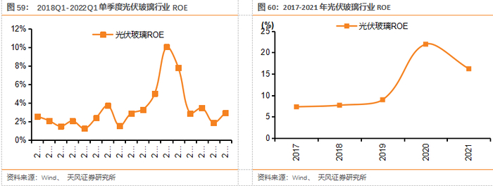我们跟踪的4家光伏玻璃行业上市公司(福莱特、信义光能、洛阳玻璃、亚玛顿),2021年总计实现收入276亿元,Yoy+28%,实现归母净利润65亿元,Yoy+9%;2021Q1实现收入52.2亿元,Yoy+52.3%,实现归母净利润5.6亿元,Yoy-45.4%。21年光伏玻璃行业ROE较20年下降5.7pct至16.2%,主要是盈利能力下降及总资产周转率下降所致,21年整体净利率17%,同比下降1.8pct,总资产周转率同比下降8pct。(注:由于港股上市公司无季度报表,季度行业数据均不包括港股上市企业)
