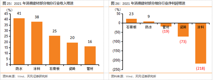 2.1. 消费建材:石膏板、防水成绩最佳,看好22年盈利能力边际改善