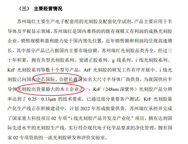 晶瑞电材称,苏州瑞红是国内难得的的既有规模又有利润的成熟光刻胶企业,销售规模和盈利能力处于国内领先位置,近年销售额和利润均呈现高速增长,其中部分产品已占据国内主要市场份额。
