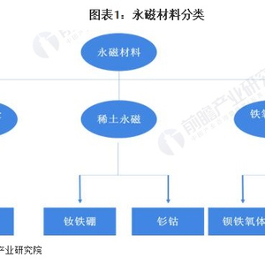永磁材料主要分为金属合金永磁材料、铁氧体永磁材料、稀土永磁材料,其中稀土材料又分为钐钴永磁材料和钕铁硼永磁材料,稀土永磁材料是金属系和铁氧体系之后开发成功的第三代永磁材料。