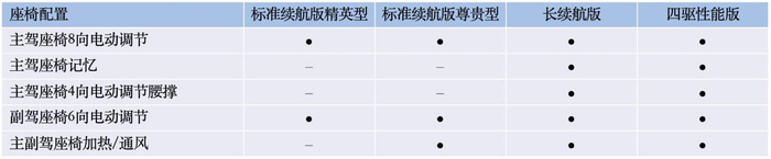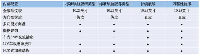 配置信息中显示,比亚迪海豹将提供四个版本的车型。根据之前的信息,标准续航版CLTC续驶里程为550km,搭载150kW电动力总成,四驱性能版CLTC续驶里程为650km,可以输出 390kW的总功率。其中最值得关注的长续航版CLTC续航里程达到了比亚迪纯电车型中最长的700km,并且零百加速时间仅为5.9秒,这个颇具吸引力。
