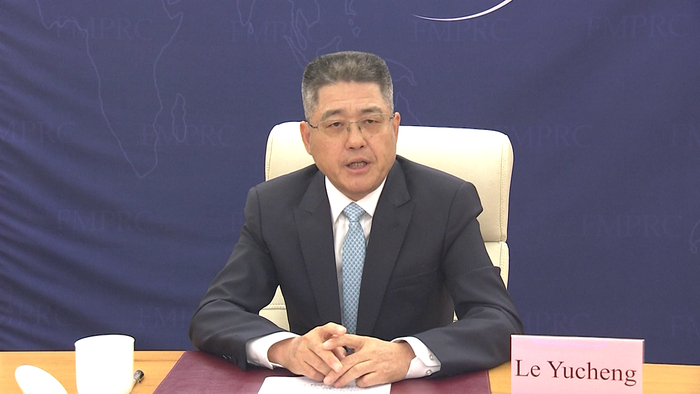 2022年5月6日,外交部副部长乐玉成出席“求和平、促发展:全球20国智库在线对话会”并发表题为“践行全球安全倡议,维护世界和平安宁”的主旨演讲。(视频截图)