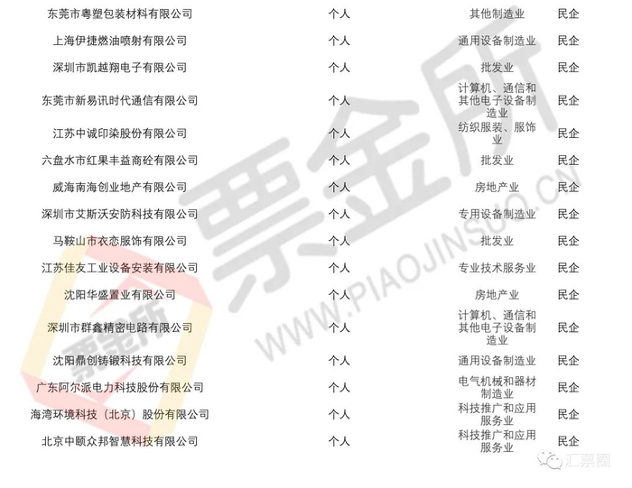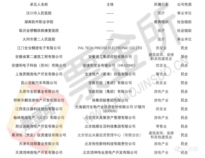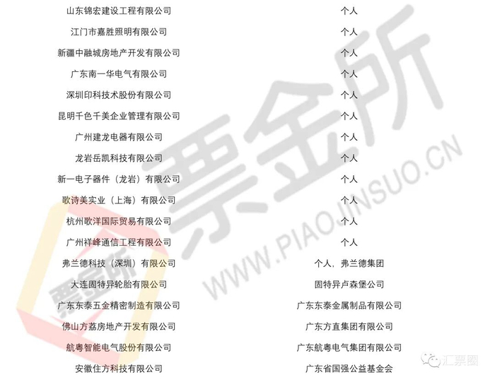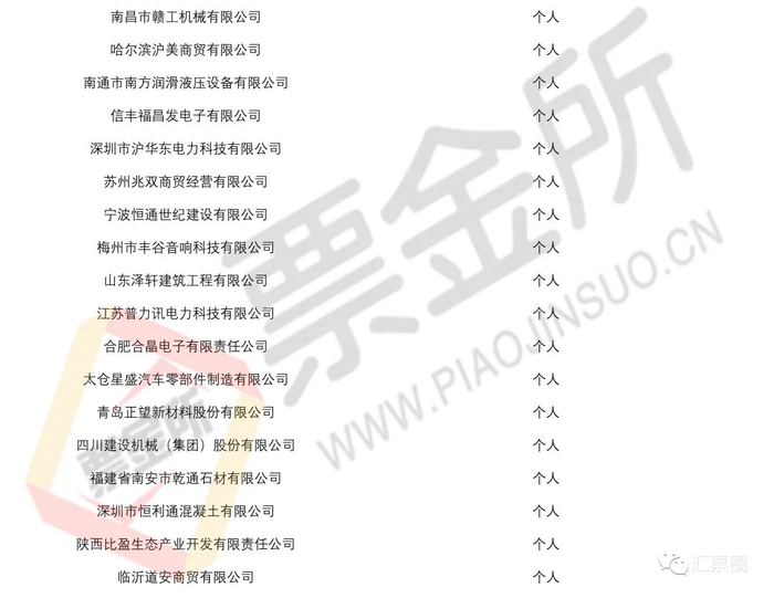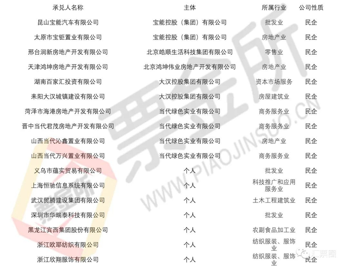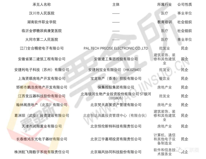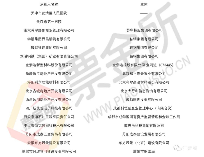 4月初披露中已存在该主体,5月初披露中新增的逾期承兑人信息: