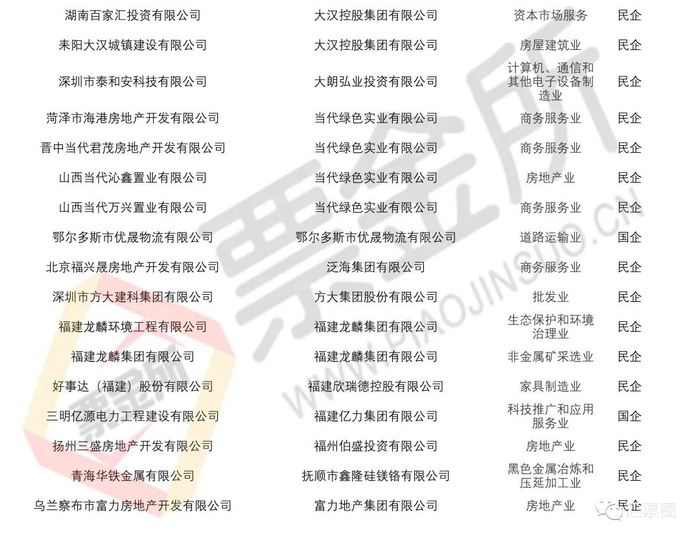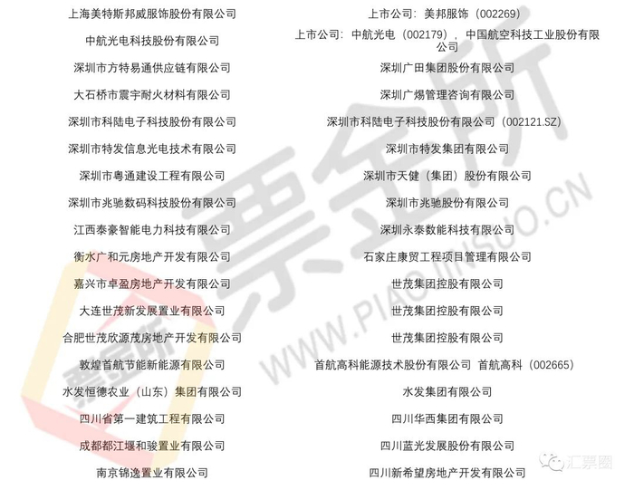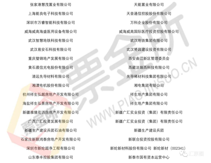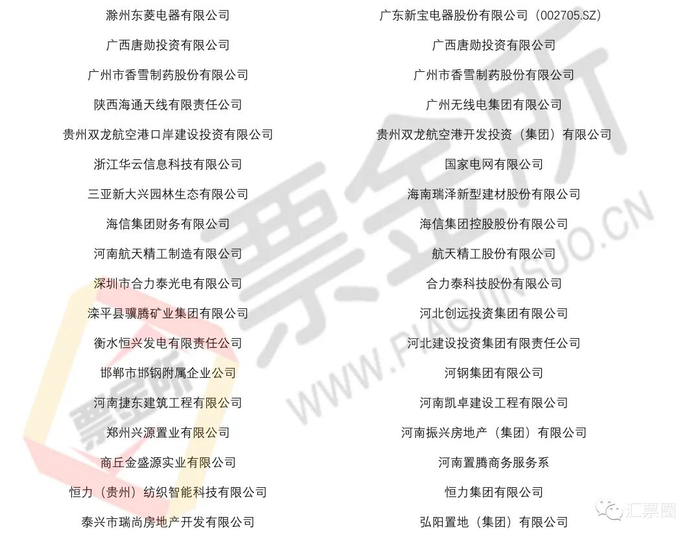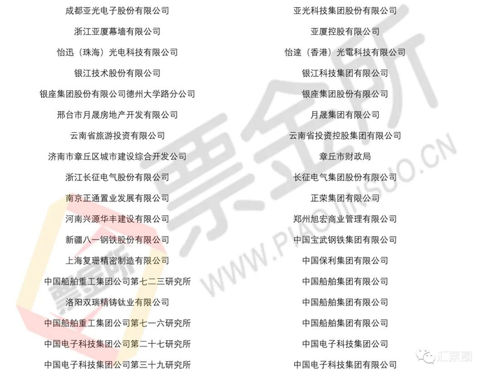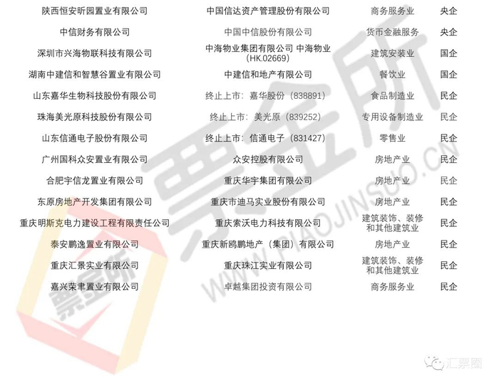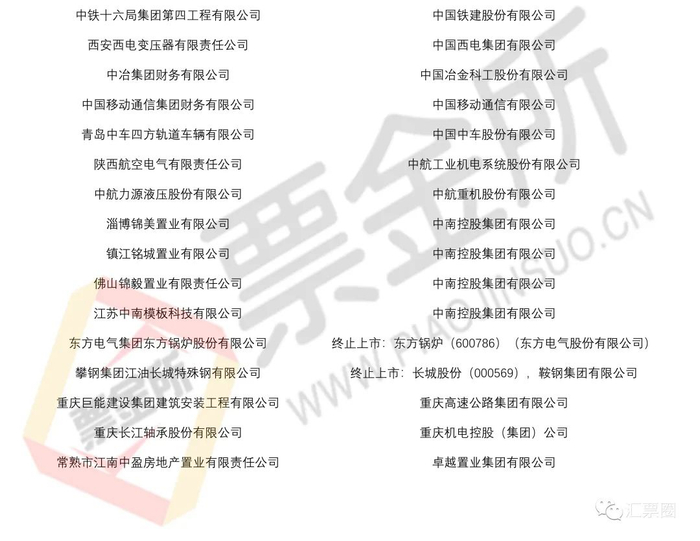 同时,本次逾期名单中包括了以下央企的财务公司(均为本次新增):哈尔滨电气集团财务有限责任公司(已发澄清公告,无信用风险)、中化工程集团财务有限公司、中国电力财务有限公司华东分公司、中信财务有限公司。