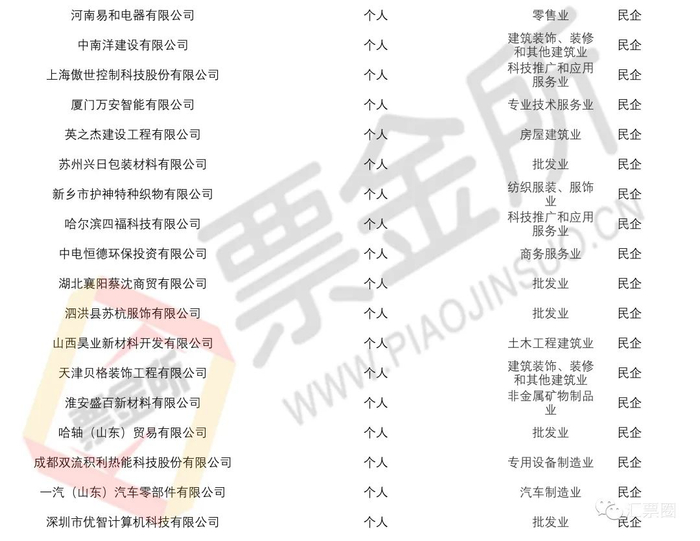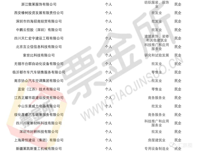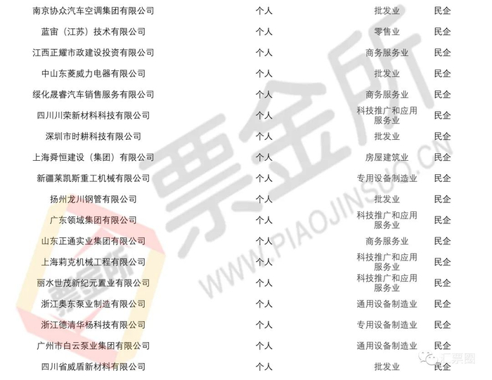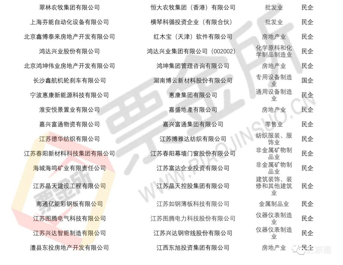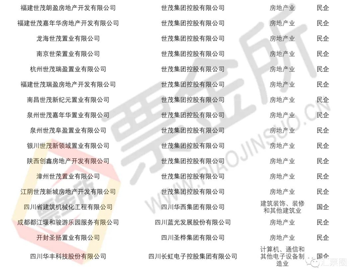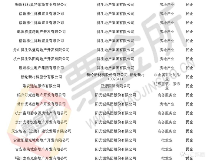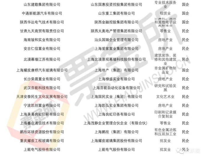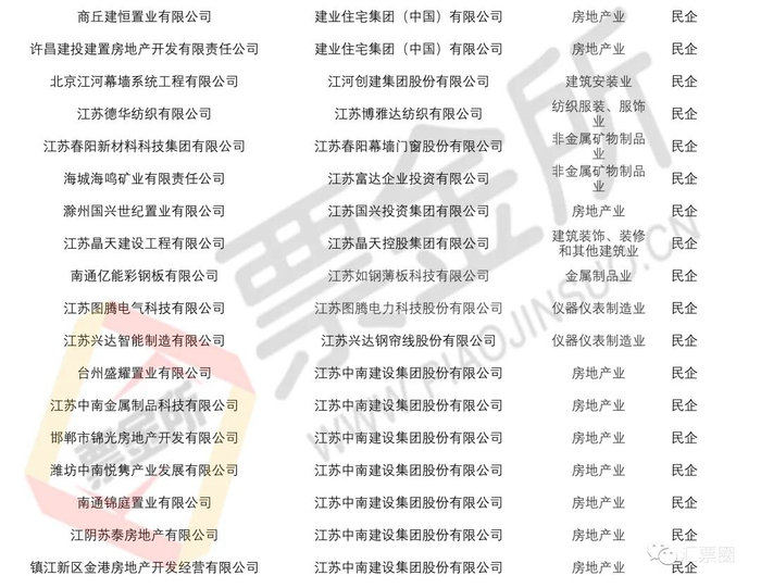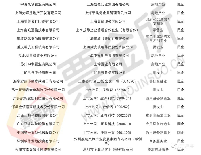 新增主体中,涉及多个行业,包含多家国央企和知名民企,如:安徽建工、宝龙地产、保集控股、比亚迪、财信地产、泛海集团、方大集团、富力地产、光明食品、白云山医药、雅居乐、航天工业、宾西集团、恒大农牧、正邦科技、上海地产、正业科技、中国一重、远大铝业、佳源、中国动力、中国电气装备、中国电信、葛洲坝、国家铁路集团、中国航发、华电集团、金茂、中海物业等。