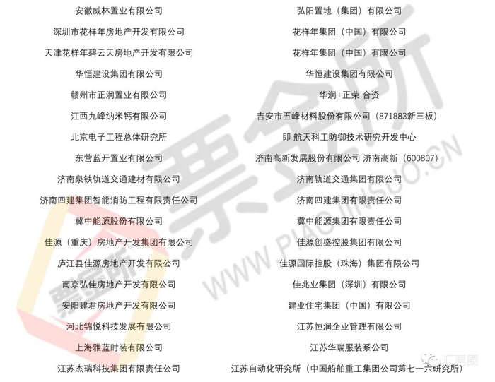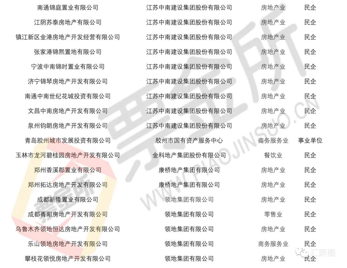 地产公司中,中南、融创、阳光城、世茂“遥遥领先“,央国企中,则出现了航天科工、中石油、中国电科的身影。