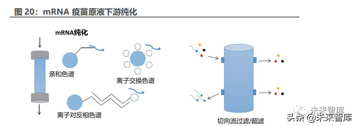 (3)国产 mRNA 纯化填料正崭露头角。纳微科技的超大孔 Nanogel 系列 离子交换产品在质粒 DNA 及 mRNA 纯化环节已有应用。同时在新技术研发端, 纳微科技已申请了 Oligo-dT 亲和色谱填料相关专利,其具有更高的 mRNA 负载 能力和更高的 mRNA 回收率,同时具有比传统 Oligo-dT 亲和填料更好的耐碱性, 可以大大降低亲和填料的生产成本,从而降低 mRNA 的生产和纯化成本。