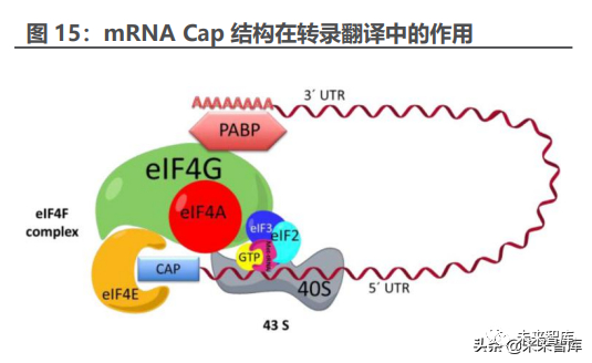 真核生物 mRNA 的 5’端通常具有桥接的 7-甲基鸟苷(m7G)帽子结构 ( Cap0 ), Cap0 结 构 中 的 第 一 个 碳 羟 基 甲 基 化 后 形 成 Cap 1 结 构 (m7GpppmN)。通常情况下,Cap 结构可以与真核起始因子 4E(eIF4E)在翻译起 始阶段相互识别,开启后续翻译过程,同时 Cap1 结构能够极大降低 mRNA 在体内的免疫原性。